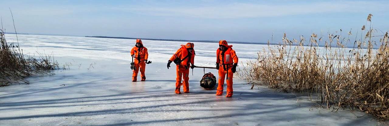 За допомогою спеціальних нош 4 рятувальників змогли винести травмованого чоловіка з криги. 0564.ua »