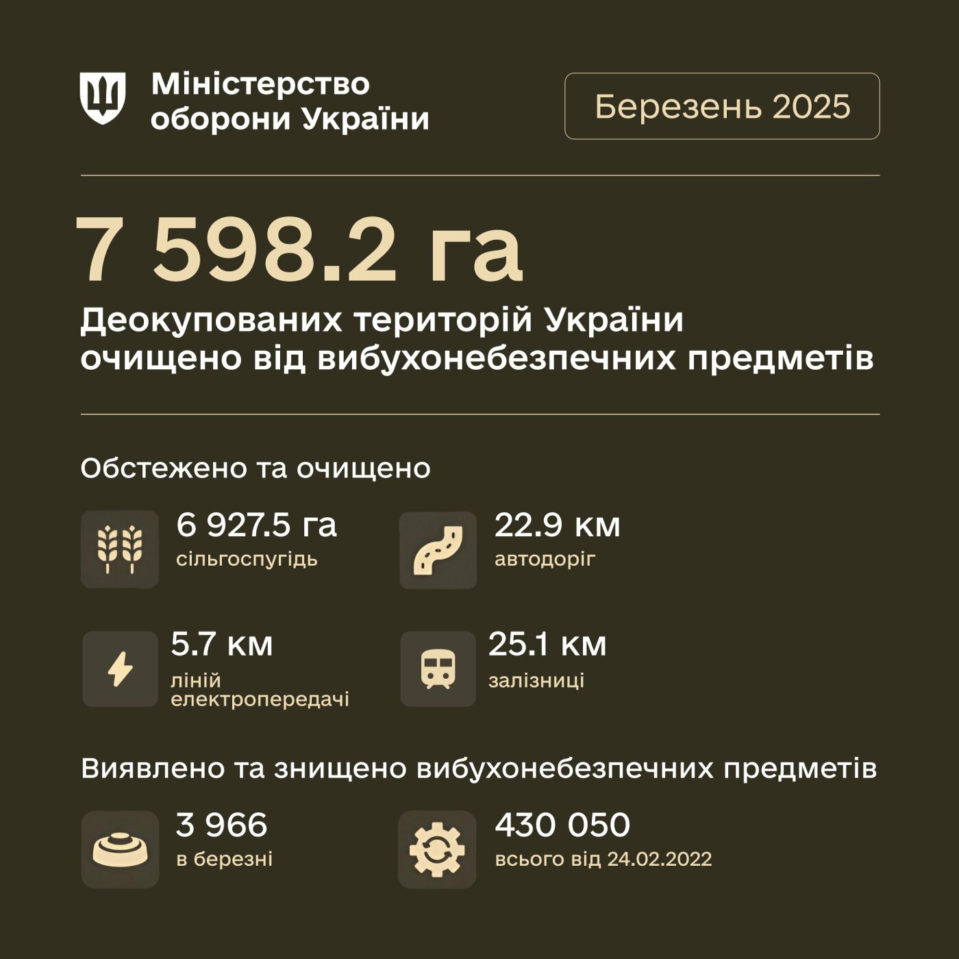 Знешкоджено небезпечні об'єкти на 6 927.45 га землі сільськогосподарського призначення та 22.93 км автомобільних доріг 62.ua »