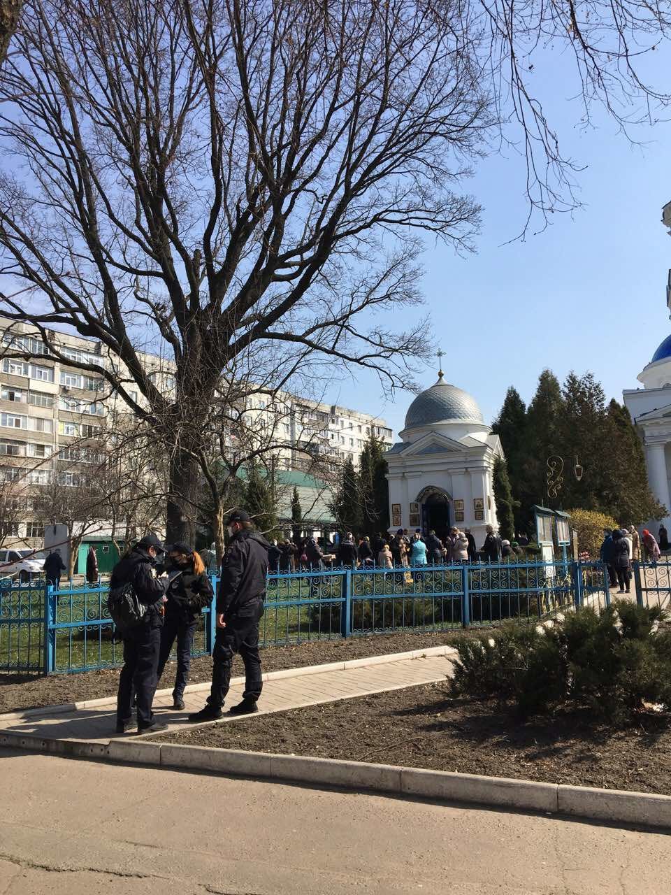 За словам свідків, які надіслали фото, люди по черзі підходять до ікони та цілують її. Про дії присутніх патрульних нічого не уточнюється 0542.ua »
