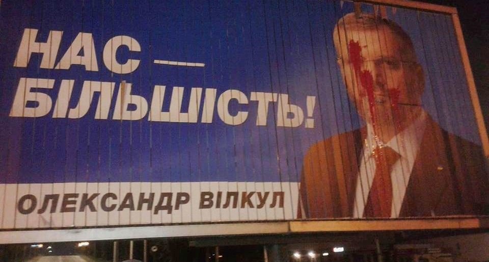Кто-то забросал рекламу Вилкула красной краской 05366.com.ua »