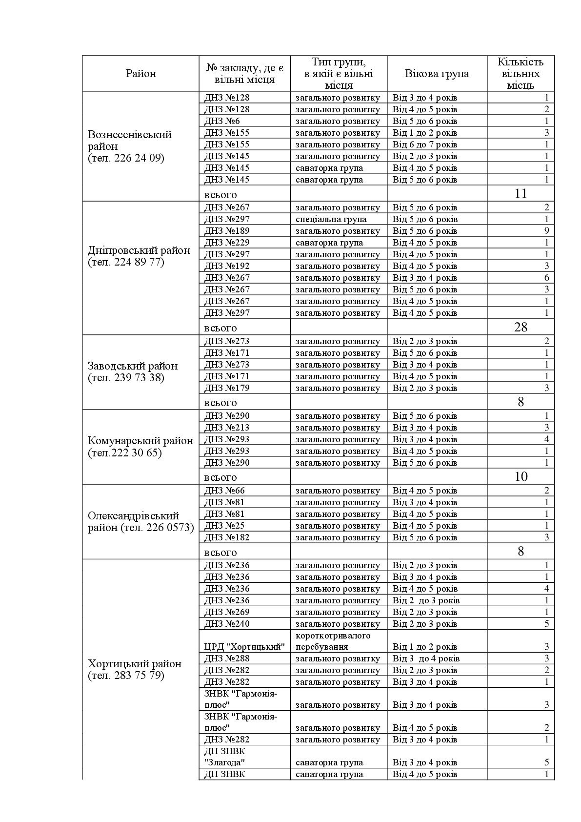 В заведениях Коммунарского района есть 10 свободных мест для детей 3-6 лет. 8 свободных мест есть в Александровском районе. 061.ua »