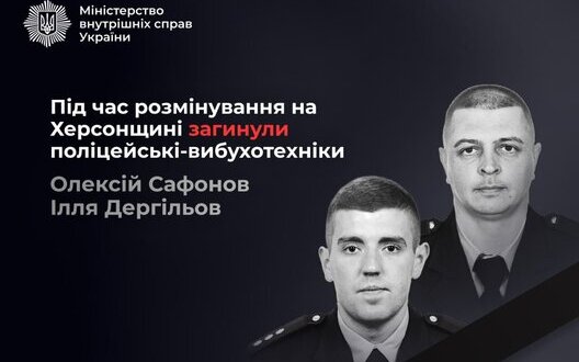 Во время разминирования на Херсонщине погибли двое запорожских полицейских-взрывотехников - старший лейтенант Алексей Сафонов и лейтенант Илья Дергилев. censor.net »