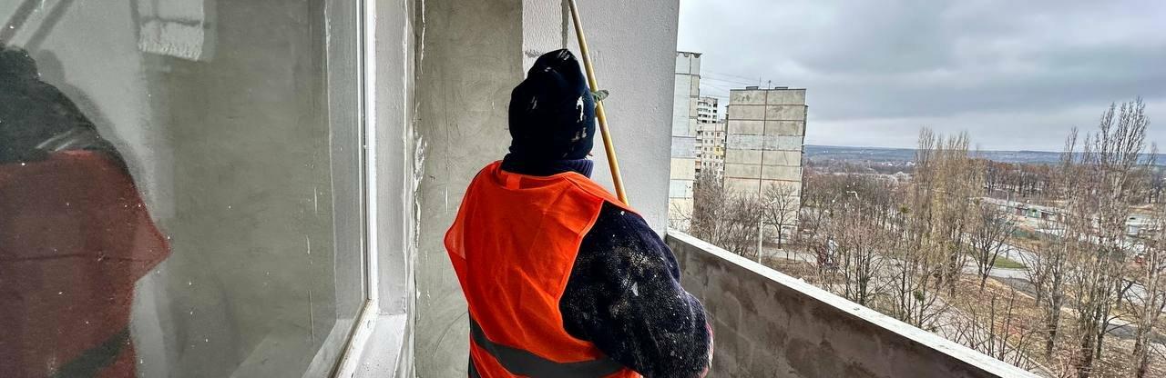 На вулиці Соборності після російських обстрілів відновлюють будинок 057.ua »