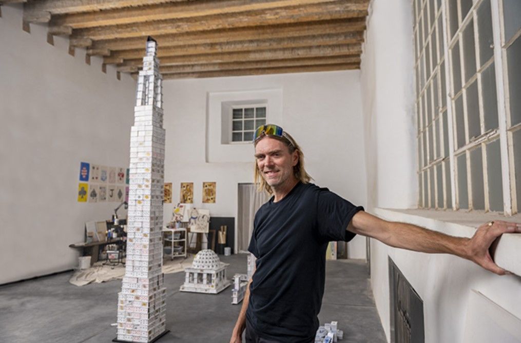Дом полностью сделан из игральных карт, за исключением складного телефона, размещенного на вершине. focus.ua »