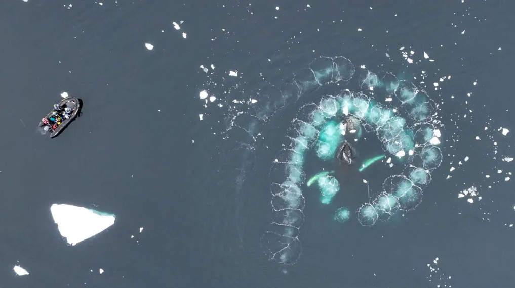 Новые кадры, снятые дроном, показывают, как морские гиганты маневрируют всем своим телом во время кормления. focus.ua »