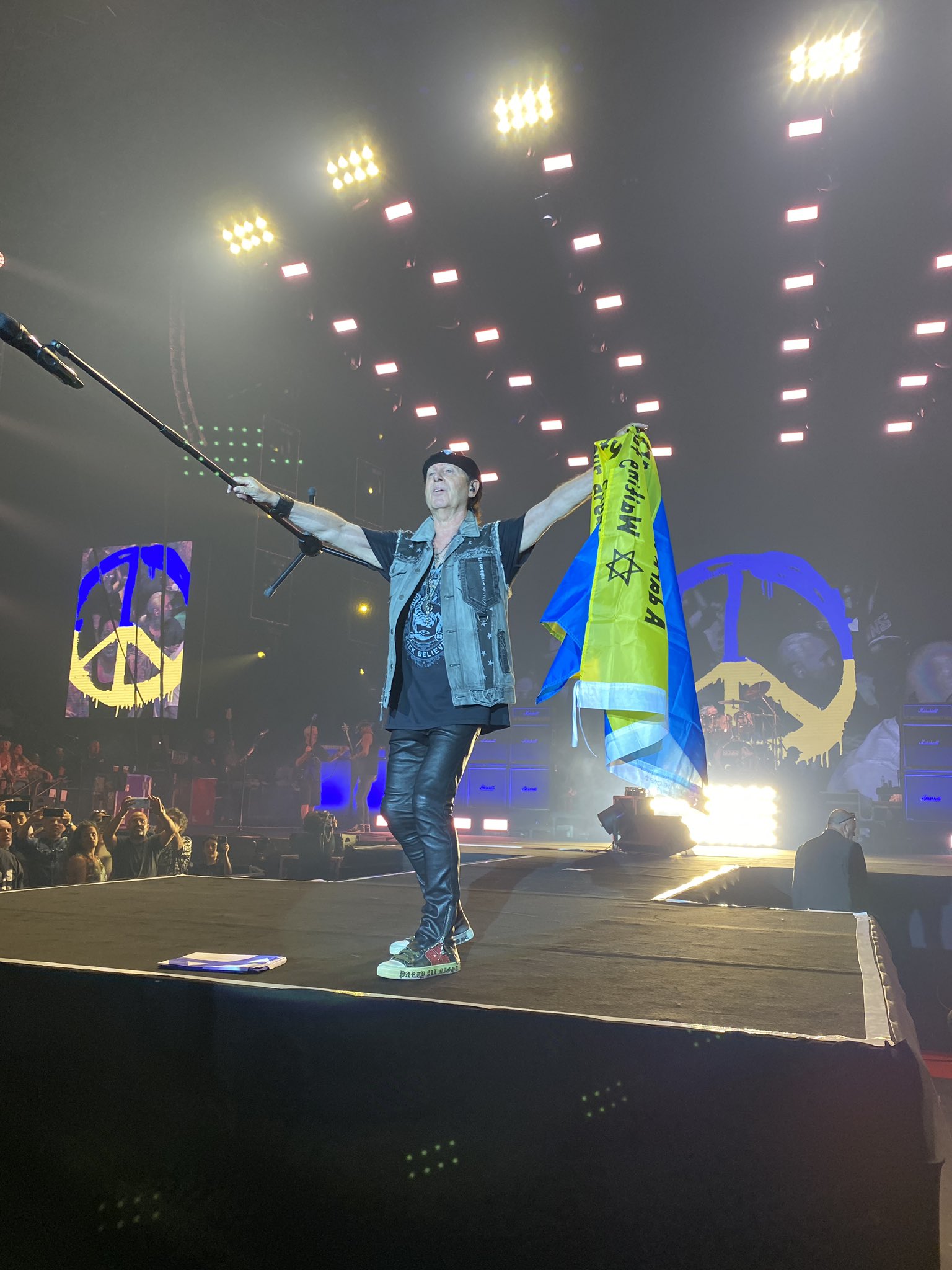 Во время концерта немецкой группы Scorpions в Тель-Авиве (Израиль) фронтмен коллектива Клаус Майне прошелся по сцене с украинским флагом, который передал ему один их зрителей. Этот момент опубликован пользователями сети в Instafgram. gordonua.com »