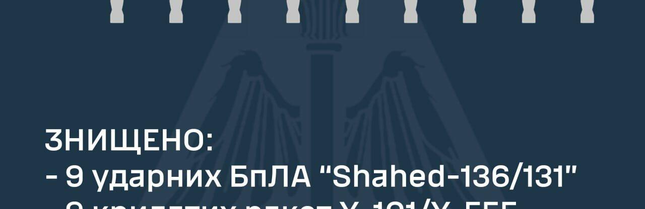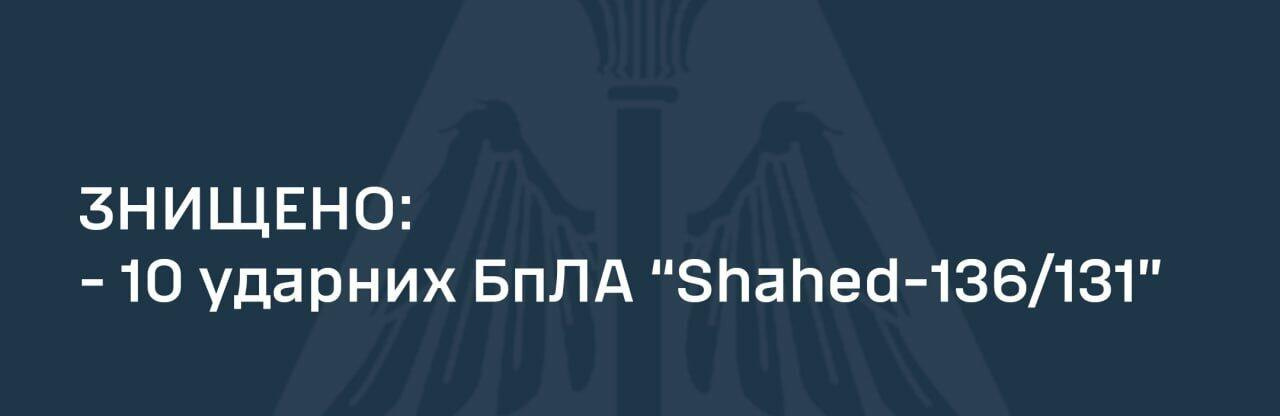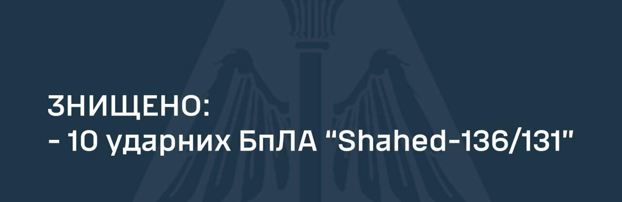 В результаті бойової роботи протиповітряною обороною Повітряних Сил та Сил оборони України знищено 10 ударних БпЛА «Shahed-136/131». 0564.ua »