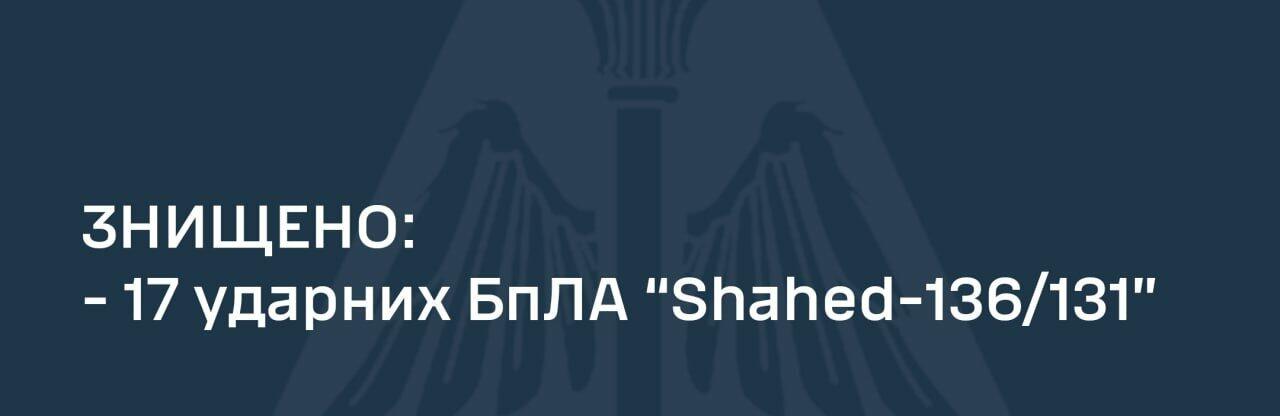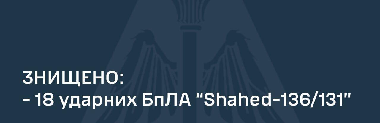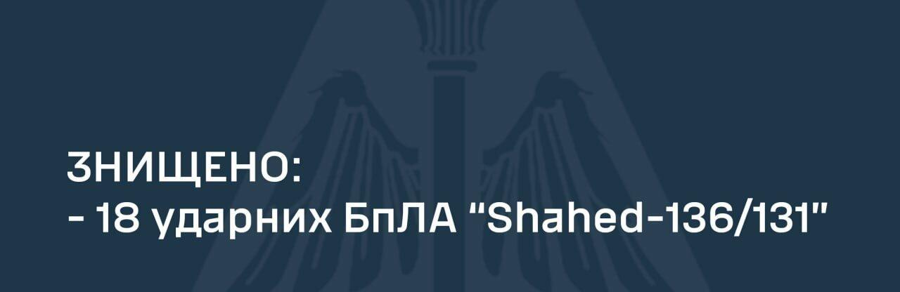 Усі 18 ворожих «шахедів» збито у межах Київської, Донецької, Дніпропетровської, Черкаської, Кіровоградської, Запорізької, Херсонської, Хмельницької областей. 0564.ua »