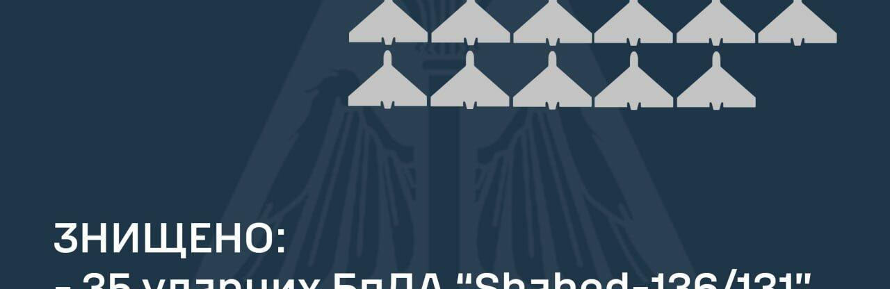 Усього зафіксовано пуски 35 «Shahed-136/131», які атакували хвилями у різний час 0564.ua »