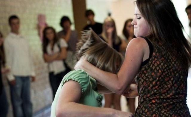 Одна из девочек, стоя на коленях, произносит слово "пожалуйста", после чего получает удар по лицу и падает 44.ua »