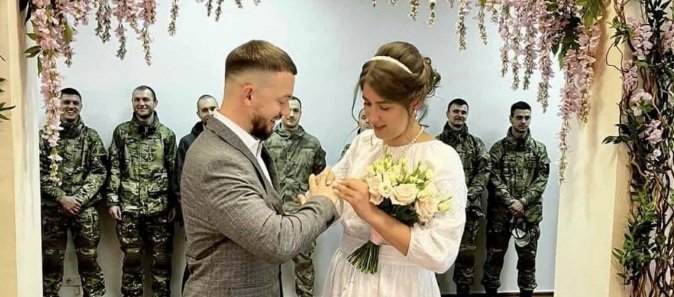 unn.com.ua »Молодята стають на весільний рушник під обстрілами, без світла, при свічках, дехто - просто з передової. Закоханні серця нічого не лякає. 056.ua »