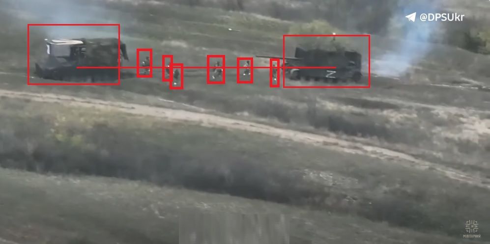 ВСУ удалось остановить колонну, после чего российская пехота высадилась из бронетранспортеров и принялась бежать назад, но уйти удалось не всем. dialog.ua »