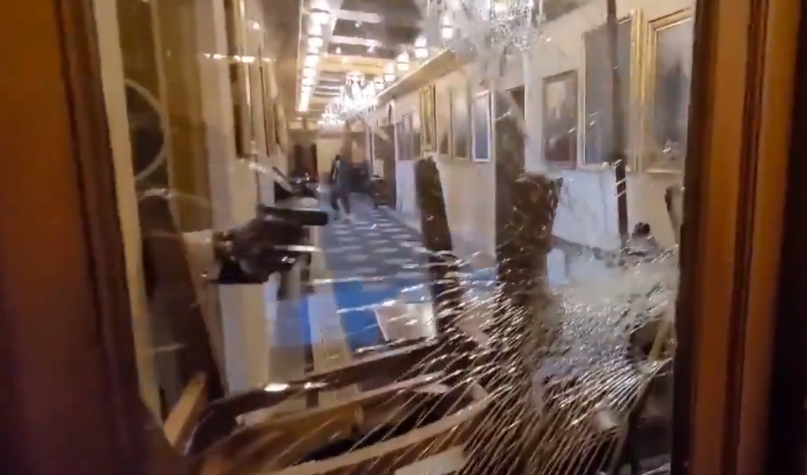 В интернете появилось видео, на котором, вероятно, запечатлено участие в штурме Капитолия россиян. Так, на одном из видео, в тот момент, когда толпа выламывает окна, чтобы проникнуть в здание Конгресса, четко слышны выкрики на русском языке: «Смелее, смелее…!». inforesist.org »