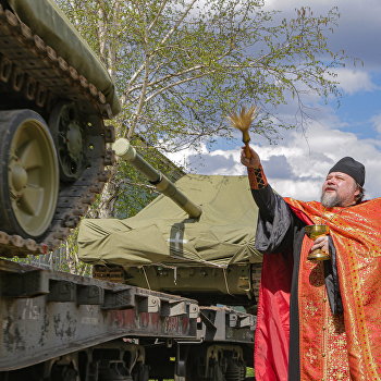Российские войска укрепились эшелоном новых танков Т-90М «Прорыв», которые предварительно на торжественной церемонии освятил настоятель храма Димитрия Донского, протоиерей Иоанн Брагин. Об этом 17 мая сообщили в пресс-службе предприятия ukraina.ru »