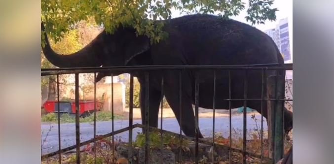 Это тот самый цирковой слон, которого сняли свободно гуляющим несколько дней назад 057.ua »