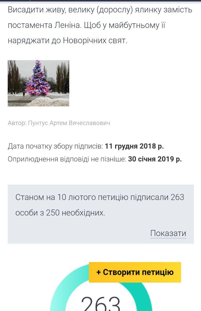 Елка на месте снесенного Ленина. Черниговская власть до сих пор не ответила