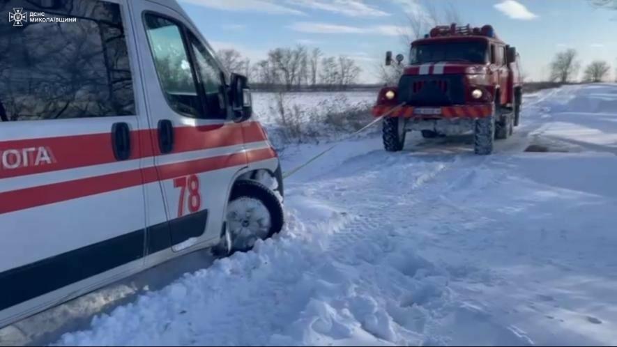 Рятувальники допомогли «швидкій», що застрягла у сніговому заметі на Миколаївщині