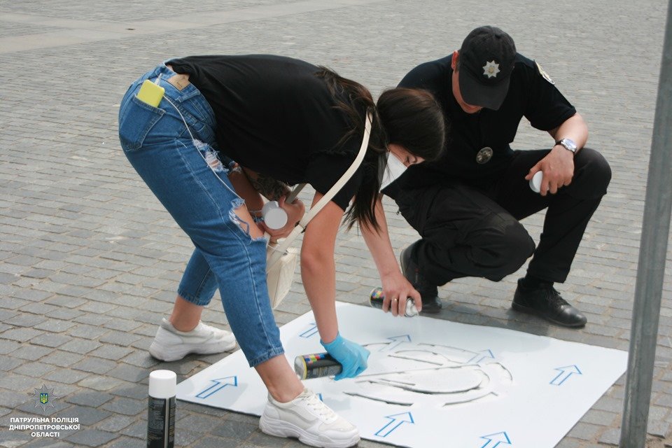 В Днепре на тротуарах появились предупредительные надписи для пешеходов. 5692.com.ua »