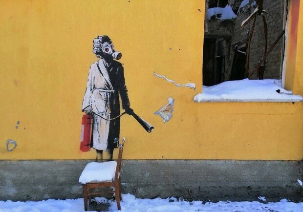 Как пишут местные журналисты, пострадал один из семи рисунков всемирно известного художника-анонима. На стене обгоревшего в результате российских обстрелов здания была изображена женщина в противогазе и с огнетушителем в руках. focus.ua »