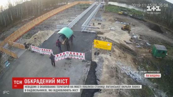 КИЕВ. 15 ноября. УНН. Под Станицой Луганской Луганской области возле места возведения нового моста, предваретльно, люди, которые прийшли с неподконтрольной Украине территории, украли лавочку. unn.com.ua »