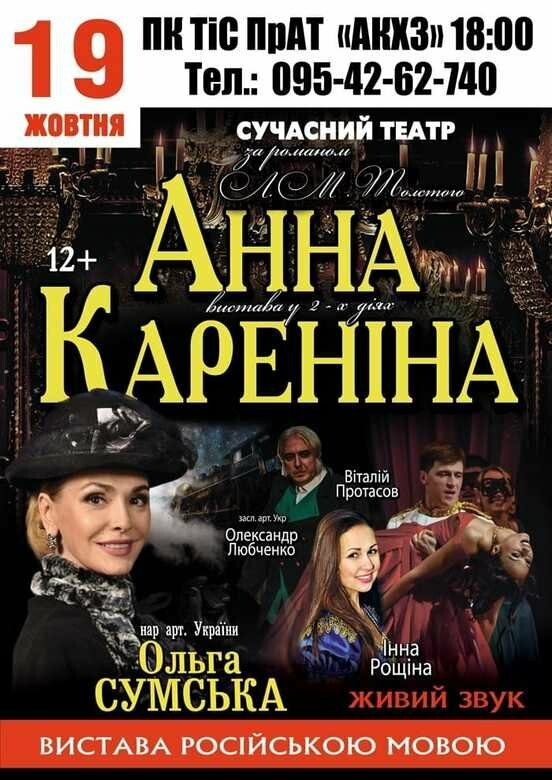 Дворец культуры, творчества и спорта презентует авдеевским театралам спектакль по роману Льва Толстого «Анна Каренина» 06236.com.ua »
