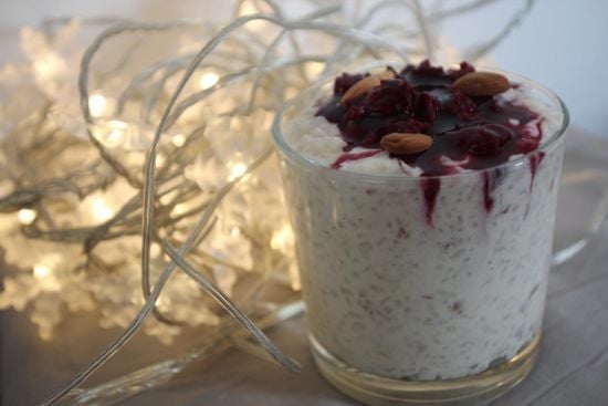 Десерт готовится из рисовой каши со взбитыми сливками, измельченным миндалем и подается с горячим вишневым соусом. ru.tsn.ua »