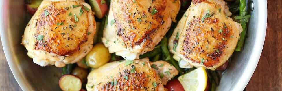 Суботній рецепт: курка з лимоном, спаржею та картоплею, запечена в духовці