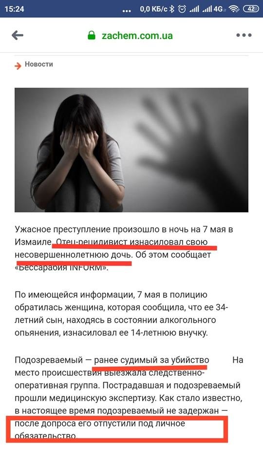Судимого за убийство мужчину, изнасиловавшего свою дочь отпустили домой под личные обязательства. 048.ua »