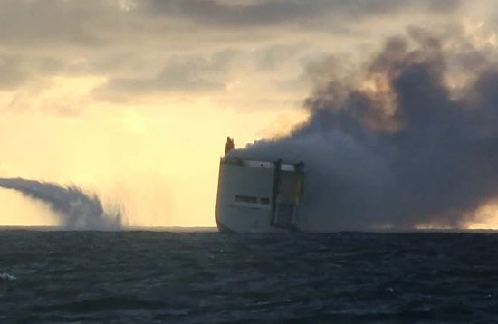 На борт палаючого вантажного судна біля Нідерландів піднялися вперше з початку пожежі