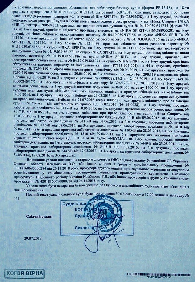 Главный военный прокурор Украины Анатолий Матиос заявил, что суд арестовал российский танкер NEYMA (Nika Spirit). «По результатам рассмотрения соответствующего ходатайства судом наложен арест на указанное судно вместе с изъятыми при обыске документами. novostimira.com.ua »