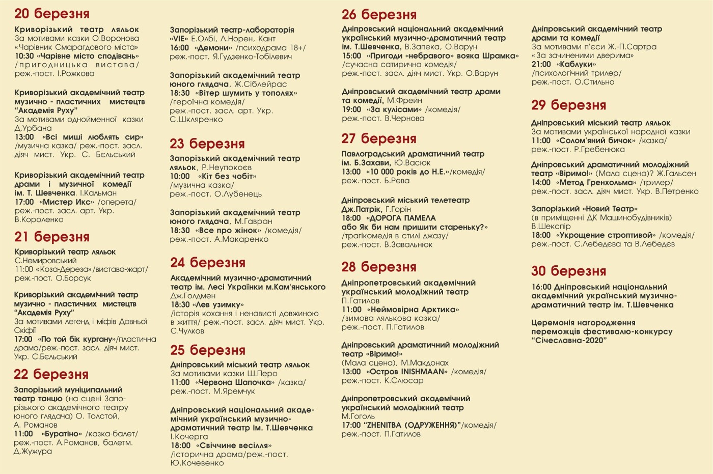 С 15 по 25 марта проходит просмотр и рецензирование спектаклей уже традиционного ХХVІ фестиваля-конкурса на получение высшей театральной награды Приднепровья "Сичеславна-2018».. 0564.ua »