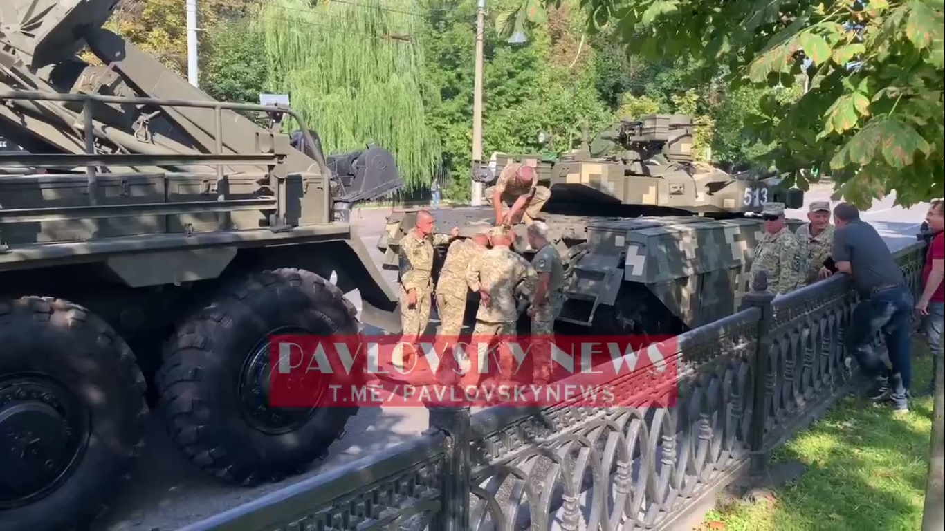 Один из шедших в колонне военной техники танков внезапно сломался — из-под него потекла жидкость, напоминающая по запаху топливо. focus.ua »