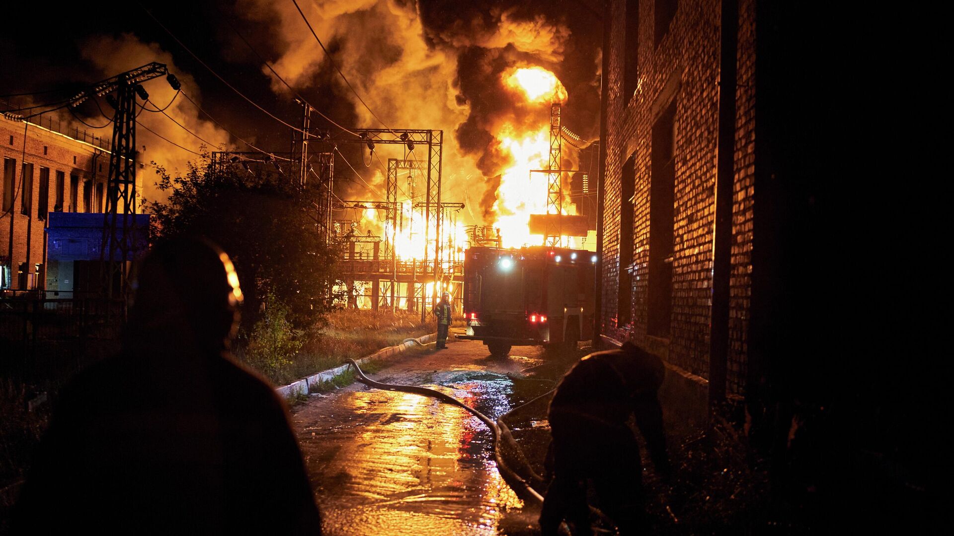 Накануне российские агрессоры повредили высоковольтные сети, к которым подключена теплоэлектроцентраль. k.img.com.ua »
