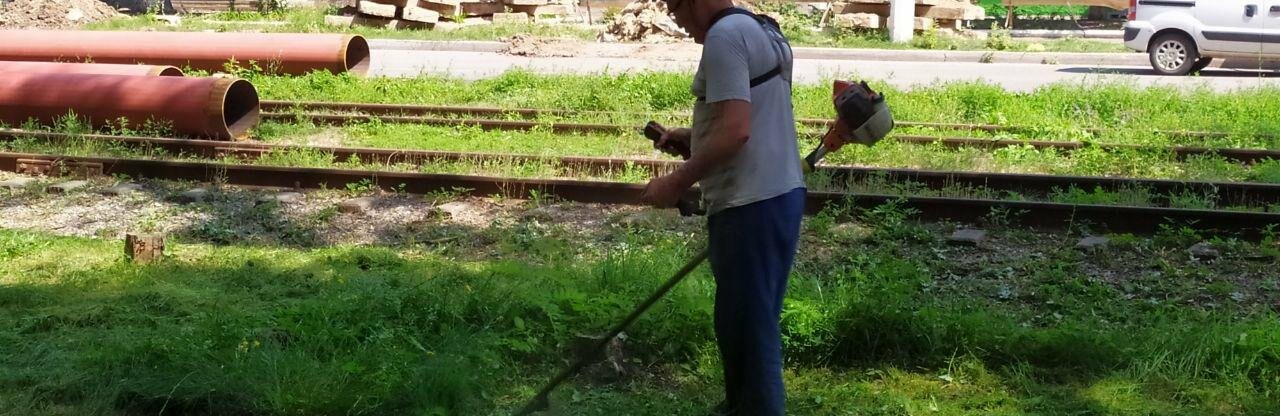 В Авдеевке на борьбу с высокой травой вышли с триммерами, а также новомодной мобильной косой, которая крепится к трактору 06236.com.ua »