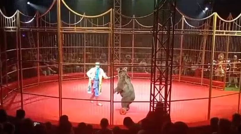 Медведица Пончик на глазах зрителей "расправилась" с россиянином на сцене цирка (видео)
