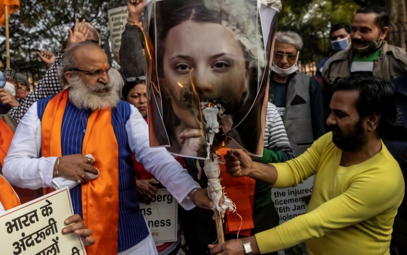 В Дели толпы разгневанных мужчин сжигают изображения шведской экоактивистки Греты Тунберг и певицы Рианны. Причиной агрессии стали посты в Twitter, в которых они поддержали протесты индийский фермеров, пишет The Guardian. apostrophe.com.ua »