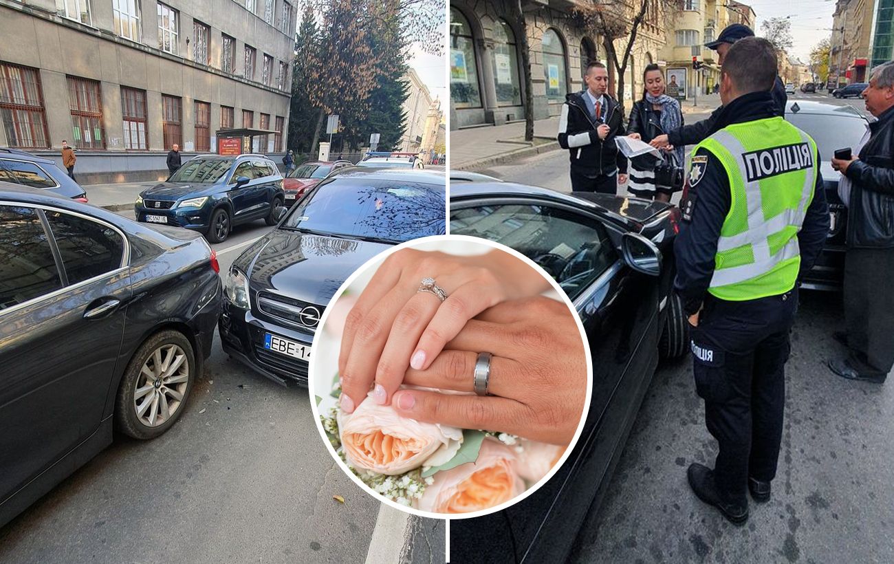 Во Львове произошло забавное ДТП, с участием двух новобрачных, которые сильно опаздывали в ЗАГС. Они убежали с места происшествия и не стали дожидаться полицию. rbc.ua »