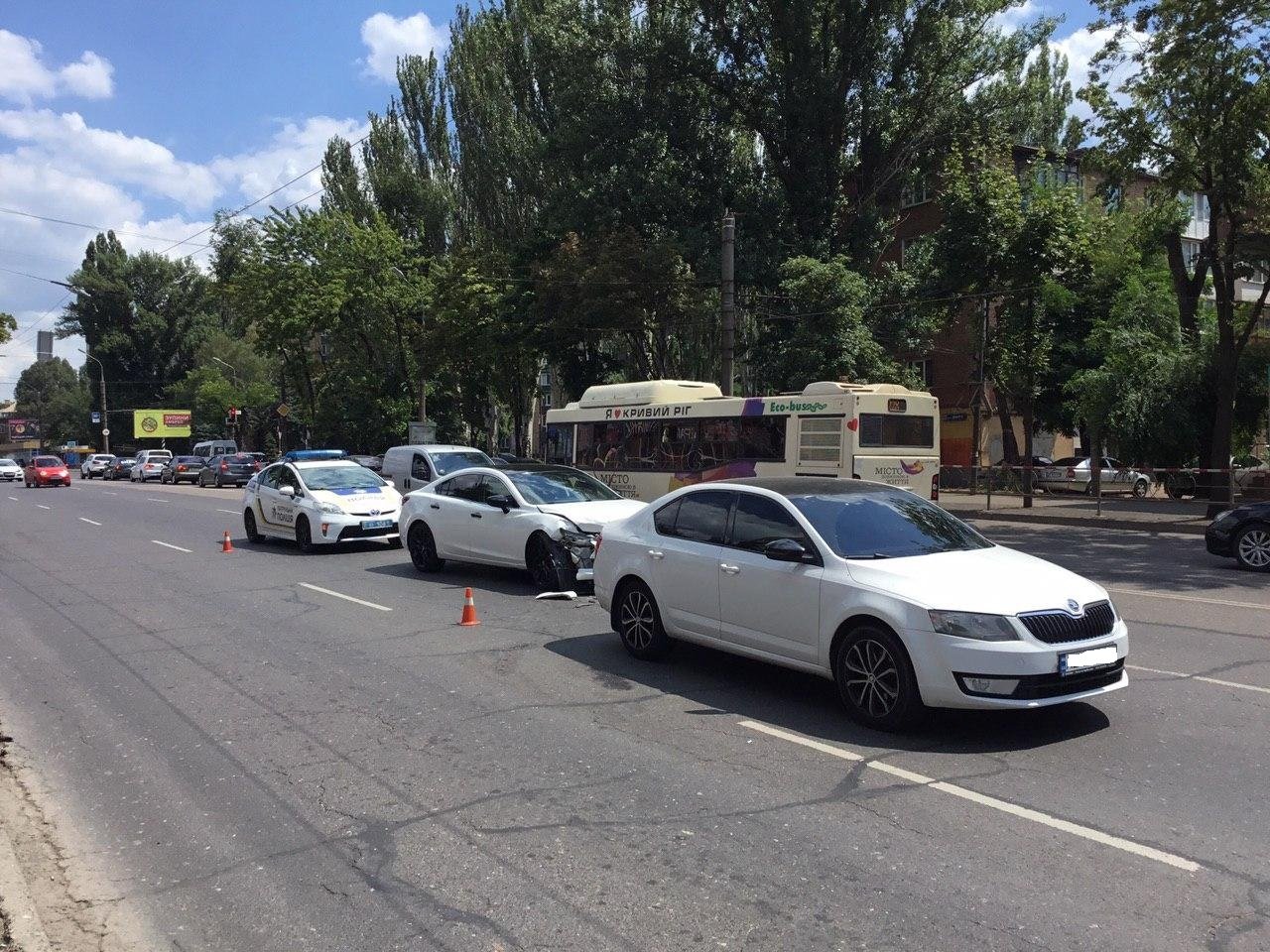 В районе остановки "Гараж" ехавший позади автомобиль Mazda ударил ехавший впереди Skoda. 0564.ua »