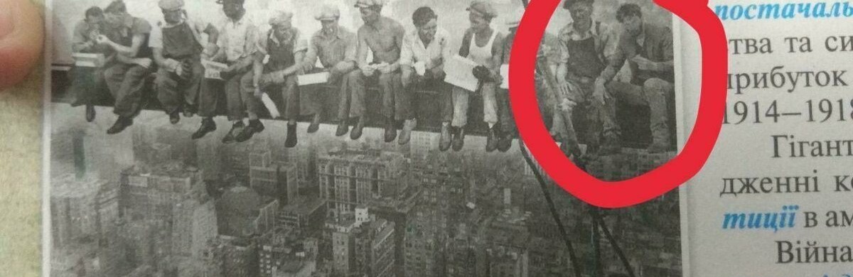 В украинском учебнике «Всемирная история» для 10-го класса пользователи соцсетей обнаружили отредактированный снимок «Обед на небоскребе». 6262.com.ua »