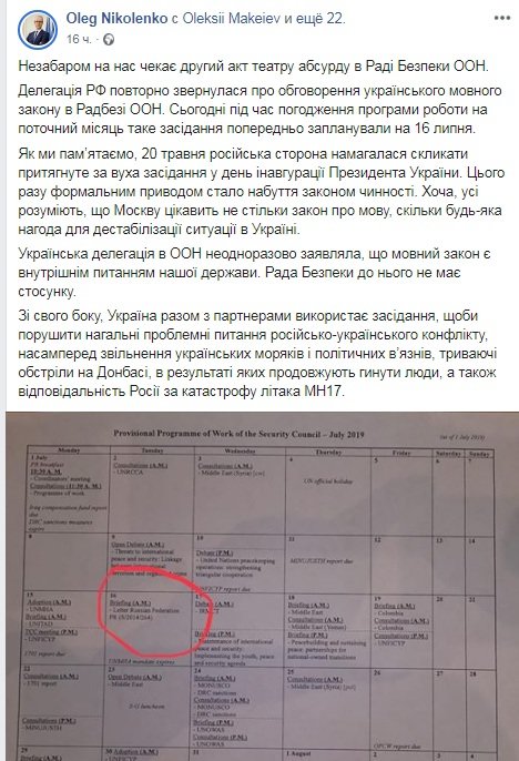 В Совете безопасности ООН 16 июля состоится заседание, инициировала которое Россия по причине принятия Верховной Радой закона об украинском языке. "Делегация РФ повторно обратилась насчет обсуждения... glavred.info »