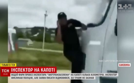 Внезапное расстройство желудка: на Буковине водитель фуры 5 километров тащил инспектора на капоте