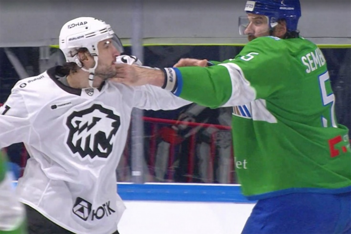 Белорусский хоккеист Олег Евенко одним ударом нокаутировал россиянина Алексея Семенова в матче КХЛ. dialog.ua »