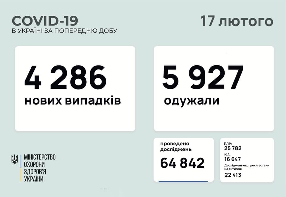 За все время пандемии в Украине заболели – 1 268 049 человек, выздоровели – 1 112 299 человек, летальных исходов – 24 285 0642.ua »