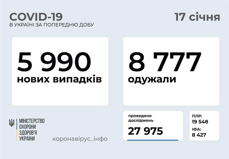За все время пандемии в Украине заболели – 1 119 314 человек, выздоровели – 796 417 человек, летальных исходов - 19 835, проведено ПЦР-тестирований - 5 781 951 62.ua »