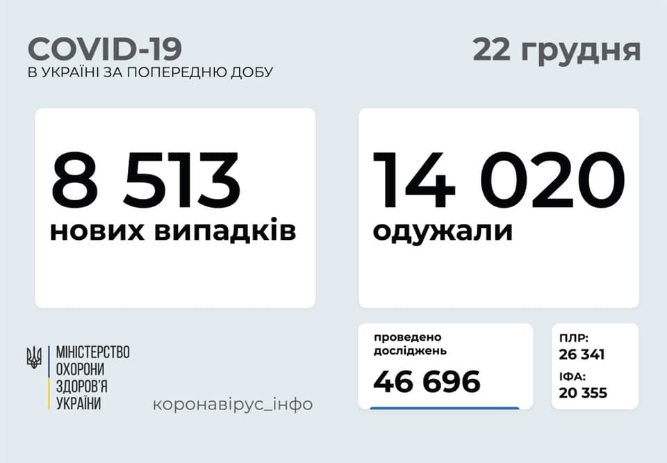 За все время пандемии в Украине заболели - 1 037 362 человека, выздоровели – 681 835 человек, летальных исходов – 18 081 62.ua »
