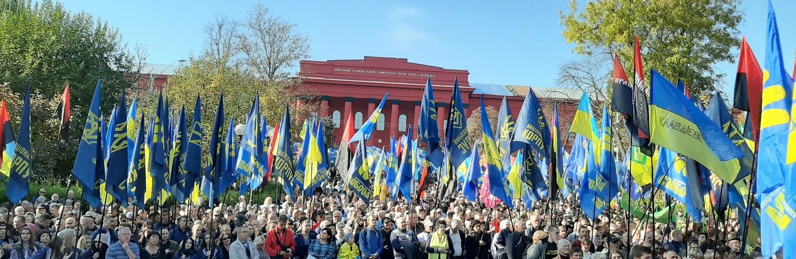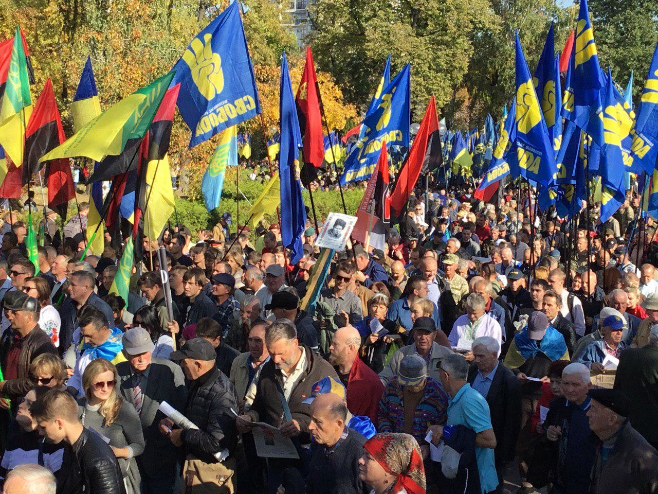 Представители "Свободы" и "Правого сектора" собрались сегодня в Киеве, чтобы пройти маршем к Офису Президента и передать подписанный рядом государственных и областных администраций меморандум против имплементации особого статуса Донбасса и "формулы Штайнмайера". censor.net.ua »