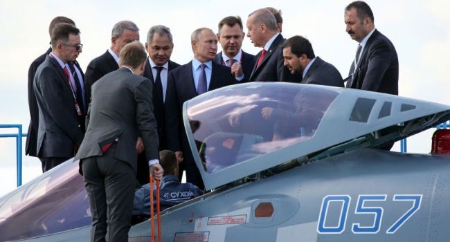 Журналист кремлевского пула Дмитрий Смирнов опубликовал фотографию президента РФ Владимира Путина, который хвалился российским самолетом перед лидером Турции Реджепом Тайипом Эрдоганом, передает replyua.net. replyua.net »
