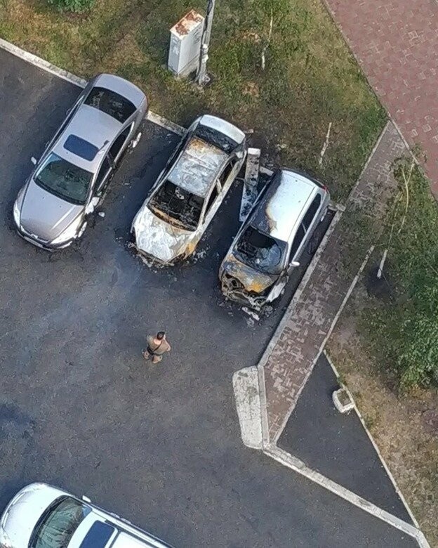 Огонь полностью уничтожил 2 машины и серьезно повредил третью. 44.ua »