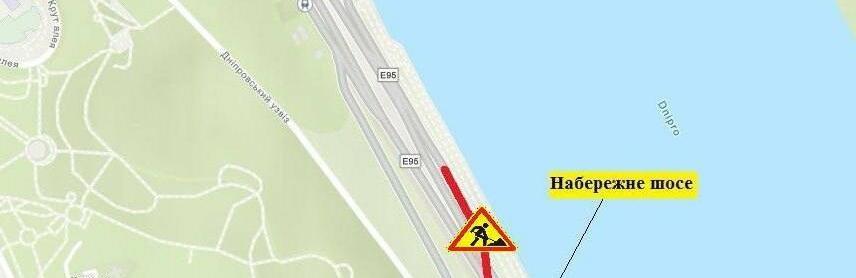 Обмеження руху будуть вводити першою смугою – на з’їзді (за напрямом руху транспорту з Дніпровського узвозу на Набережне шосе) 44.ua »