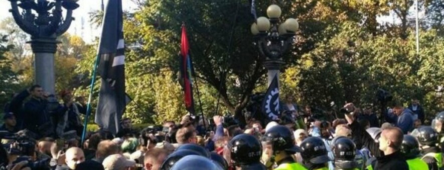 Правые принесли с собой кувалду и лестницу, на месте присутствовали полицейские и нацгвардейцы. unian.net »